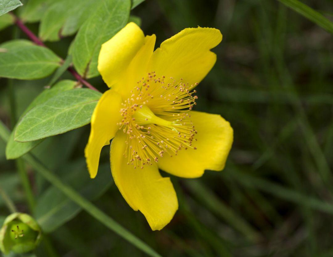 在我国陕西、甘肃及以南广大地区的山坡林下、灌丛中生长着一种藤黄科植物,其特点是灌木,小枝拱曲,常红色或褐色,单叶对生,花朵大型,金黄色,看起来很漂亮,人们常叫金丝梅或土连翘,具有药用和观赏价值。今天我就谈谈这种植物的一些情况。