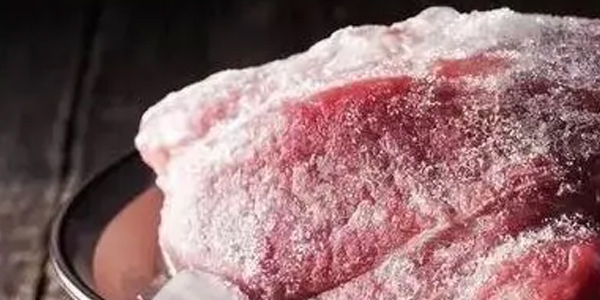 4、盐水解冻法:将冰冻肉块放进保鲜袋中,密封好,放入有凉水的盆子中,加入适量的食盐,可以快速解冻。