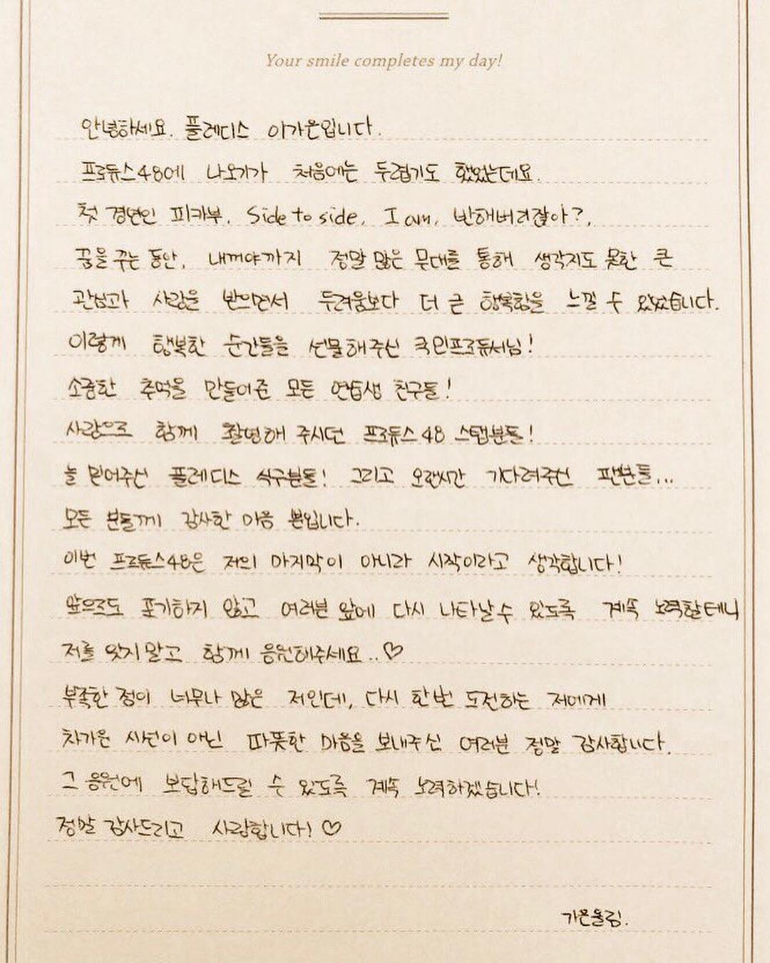 而在9月2日,李佳恩通过自己自己的应援站表达了自己对粉丝的感激之情,更是贴出手写信,她表示“得到了意料之外的关心的爱,比起恐惧更多的感受是幸福”。