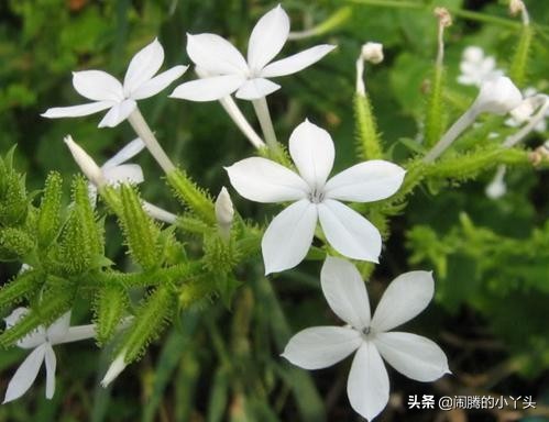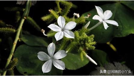 白花丹,别名白雪花、白皂药、山波苓、一见消、乌面马、火灵丹、假茉莉、猛老虎、白花岩陀。多年生蔓生亚灌木状草本,高2-3m。茎细弱,基部木质,多分枝,有细棱,节上带红色,除具腺外,光滑无毛。单叶互生;叶柄基部扩大而抱茎;叶片纸质,卵圆形至卵状椭圆形,长4-10cm,宽1.5-5cm,先端尖,基部阔楔形,无毛,全缘。