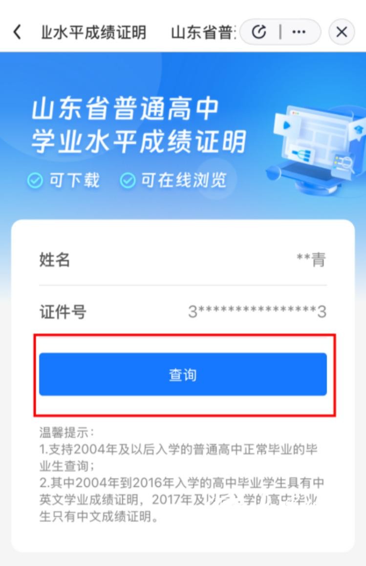 “爱山东”平台上线新功能:便捷查询山东省普通高中学业水平成绩证明