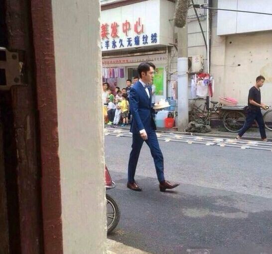 电影《一代妖精》冯绍峰造型曝光,一身蓝色西装非常讲究,很有旧上海的感觉~