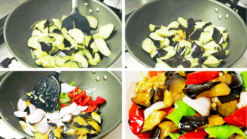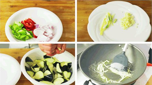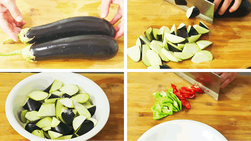 所需食材:茄子 青椒 红椒 洋葱 葱姜蒜