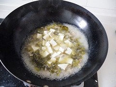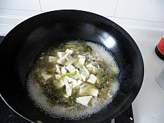 6. 水烧开后放入豆腐,时间充足的话,豆腐可先热水淖一下。
