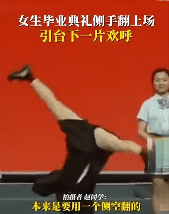 女生在毕业典礼上侧手翻登台引发欢呼,拍摄者:她是练拉丁舞的,本来想侧空翻