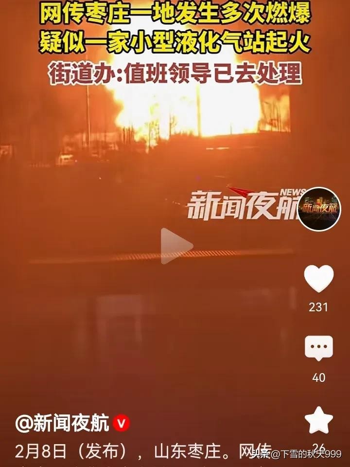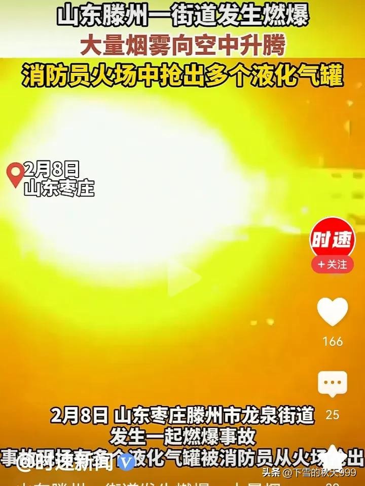 网传山东滕州一地发生多次燃爆!疑似一家小型液化气站起火!