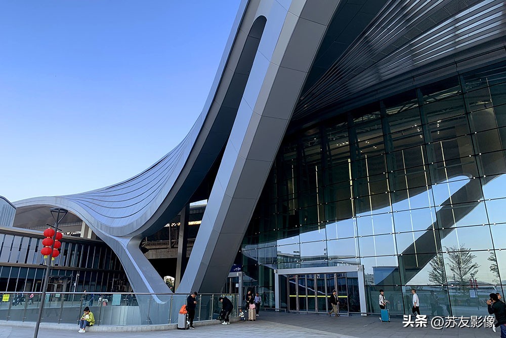 虎门站共三层为一座地面紧凑型建筑,采用展翅飞翔的蝴蝶造型,顶层为站台和6车道的火车轨道。站台高于地面约18米,因其高架站台而被称为空中火车站。