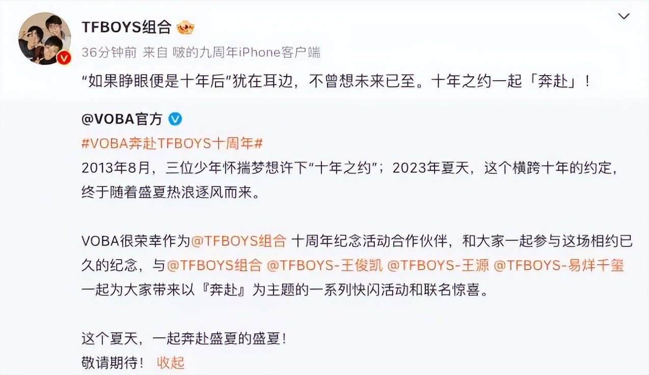 TFBOYS十周年纪念活动官宣,王俊凯、王源、易烊千玺发文;