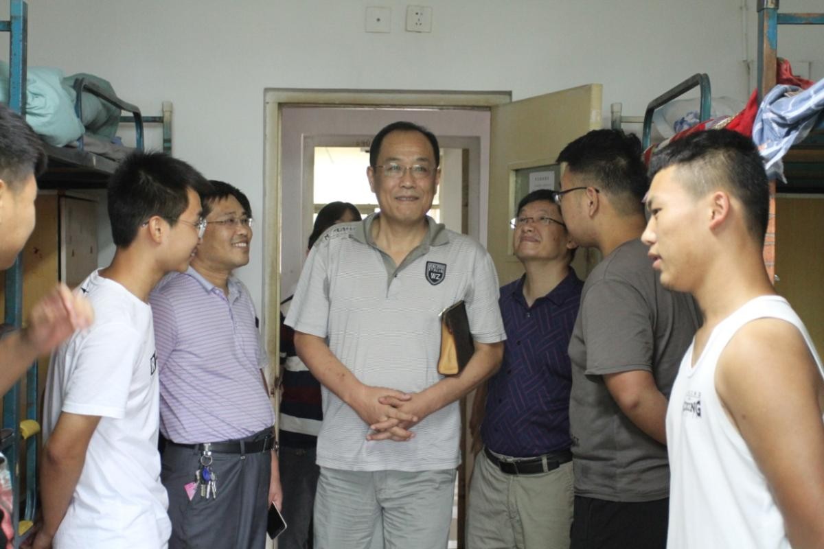 宋磊亲切询问同学们入学时对大学的理想和人生规划目标,对新生的宿舍卫生进行了检查,让新生从入学开始,养成好的行为习惯。郭自立亲自查看宿舍每个角落的安全情况。对随行的学工干部提出公寓应有更高的管理水平,要主动对公寓的设施进行检查维修,加大对新生的行为习惯进行培养和教育。罗相杰重点介绍了实验班的情况,就同学们关心的问题做了介绍。