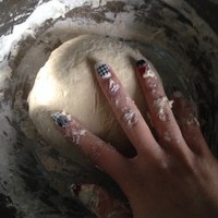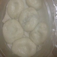 面粉放入盆子 ,加入苏打大概100克放,5克苏打 ,热水和哦~成了光滑的面团, 然后用温热的湿布盖上, 发面半小时变成2倍大就好了
