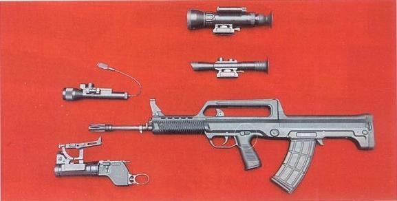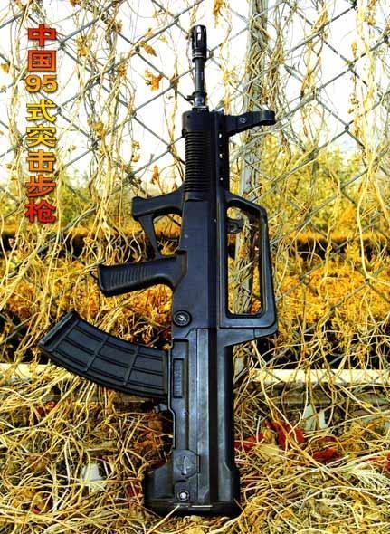 95式自动步枪(QBZ-95)是由中国兵器装备集团公司208研究所研制的突击步枪,主设计师为中国工程院院士朵英贤,属于95式枪族,为目前中国人民解放军的制式自动步枪之一。 它是中国研制的第二种小口径步枪,1997年的香港回归交接仪式上首次出现在公众视线中。95式采用了无托结构,外部材料大量使用了工程塑料,这使得在外形上与以前苏系风格浓郁的中国造枪械如81式等完全不同。