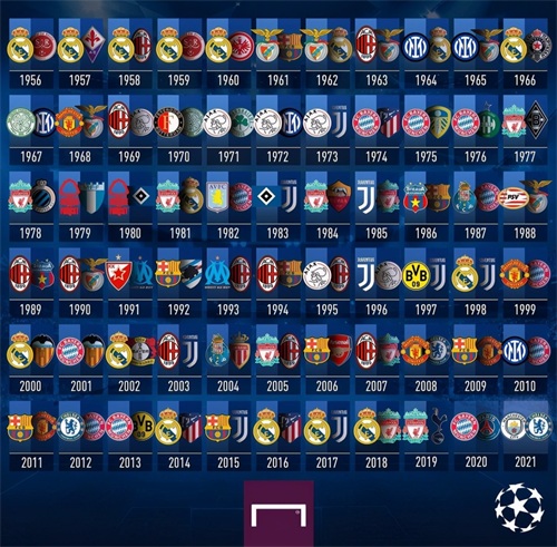 再往后,阿贾克斯4次问鼎,最近一次是1995年。曼联和国米都是3次,最近一次分别是2008年和2010年,也都暌违十年以上了。