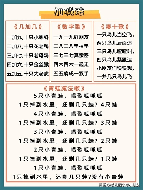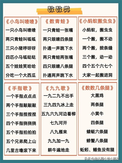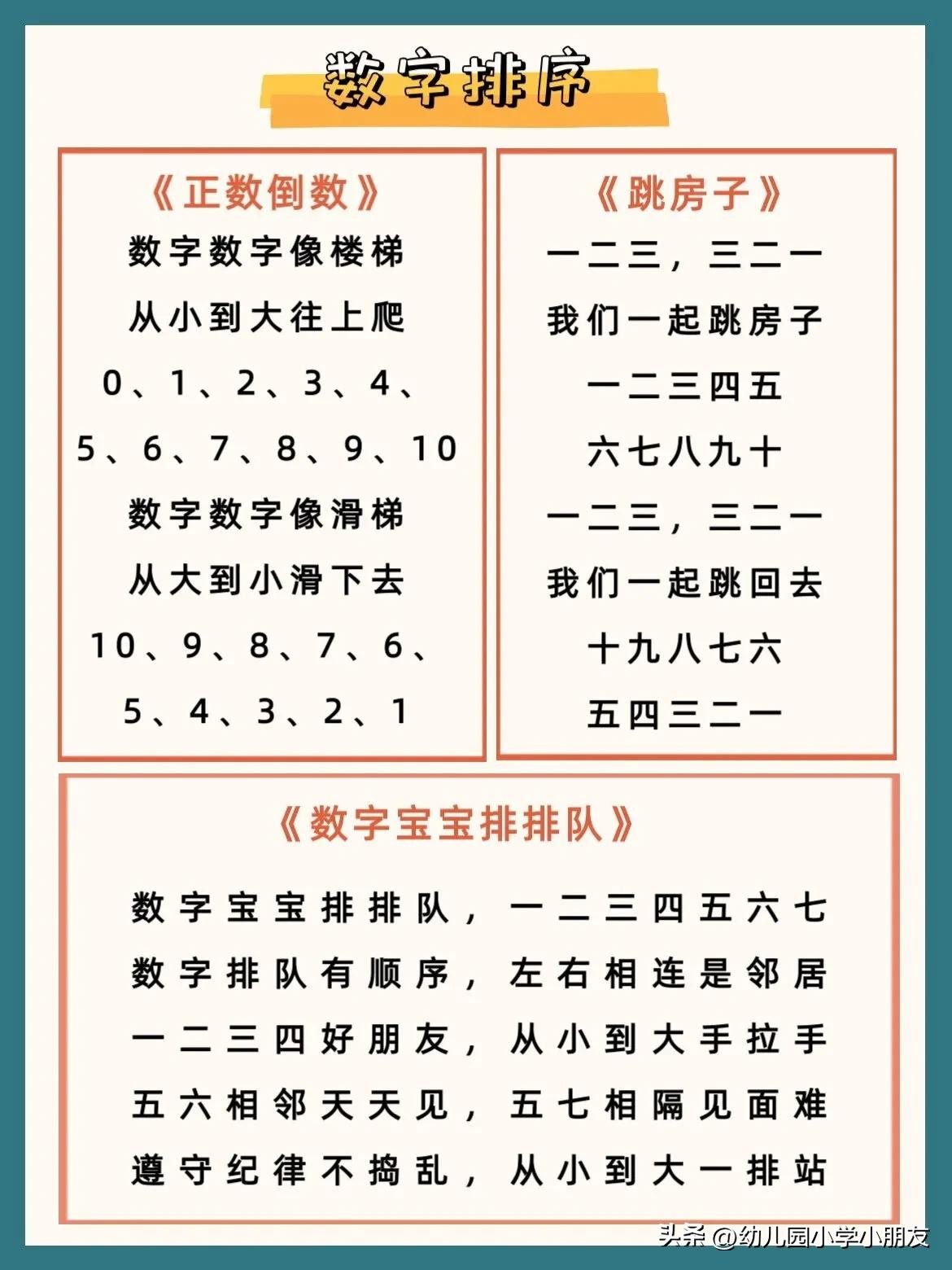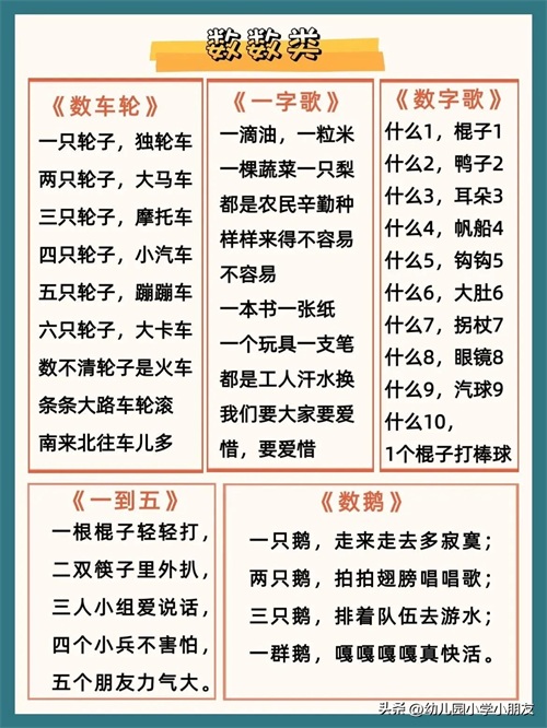 本次整理的数字儿歌都非常简单,主要包括以下几个部分: