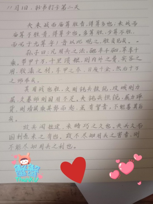 抄书打卡第二天,孙子兵法附译文