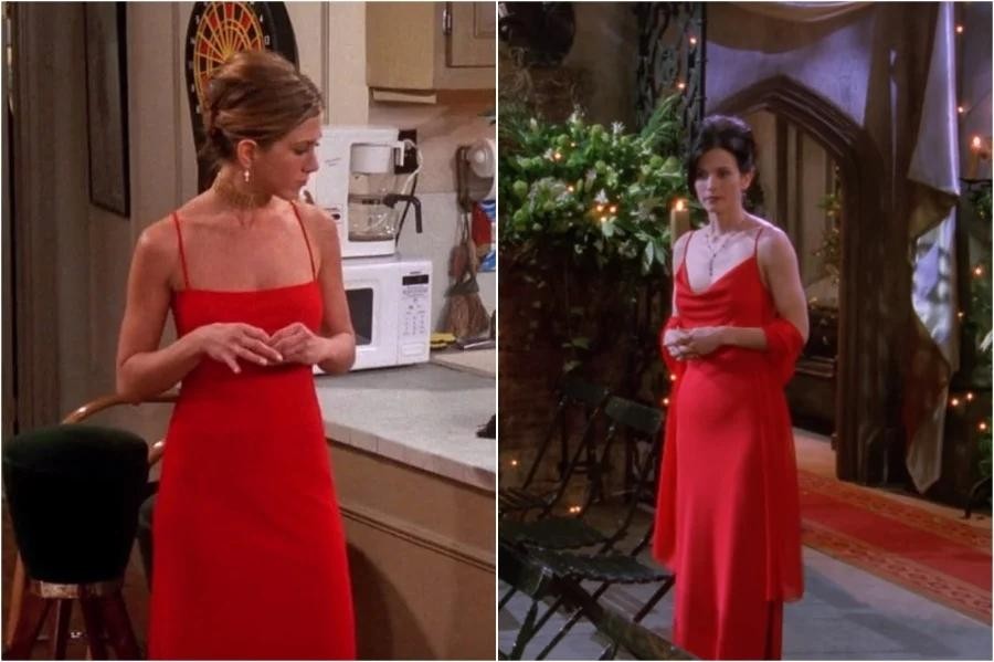 虽然不是电影,但是老友记这部电视剧实在是过于经典了。剧中主角们的穿搭甚至影响到了整个90到00年代的时尚风格,有些搭配就算拿到今天也是毫不过时,毕竟流行是个圈。剧中莫妮卡和瑞秋的这两条红裙完美展示了红透90年代的一件式衬裙风单品。