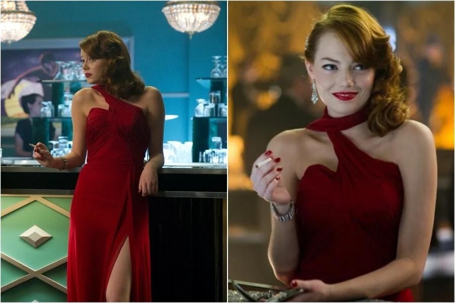 艾米莉亚·克拉克(Emilia Clarke)拍摄电视剧《权力的游戏》的间歇中出演了这部爱情电影,颠覆了她广为人知的高贵“龙妈”形象。片中她饰演了一位精灵古怪的平民女孩,在出席上流聚会的时候,她穿了这条正红色深V修身连衣裙试图让自己看起来像个富家女。不得不说虽然她看起来不一定很富贵,但是确实可爱极了。