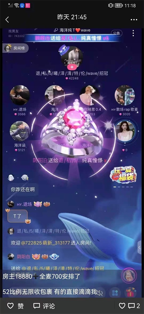 同时,还会有平台“背包客”(中间商)主动私聊平台用户钻石兑换操作业务。通过推送私人微信,“背包客”引导平台用户到指定房间自行把背包内的钻石礼物刷给自己,然后再将现金兑换到微信或支付宝。据了解,一般兑换比例为平台钻石礼物的52%。“背包客”通过低价买入,再高价卖出,赚取了平台的漏洞红利。