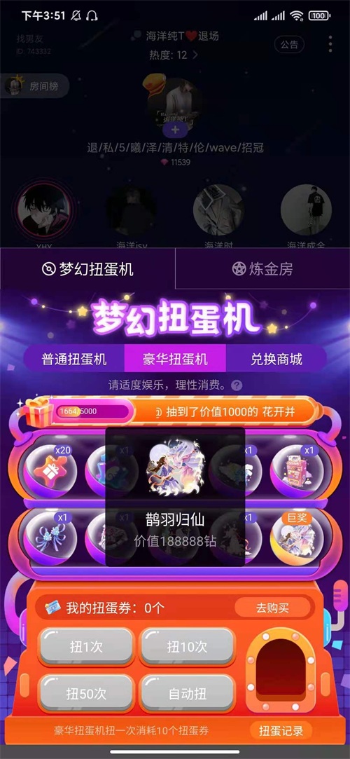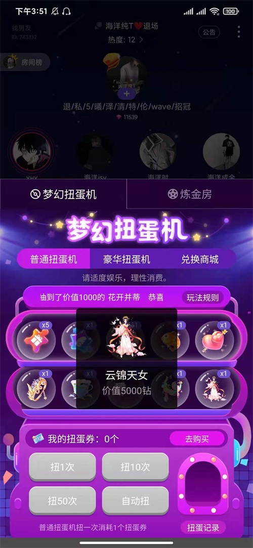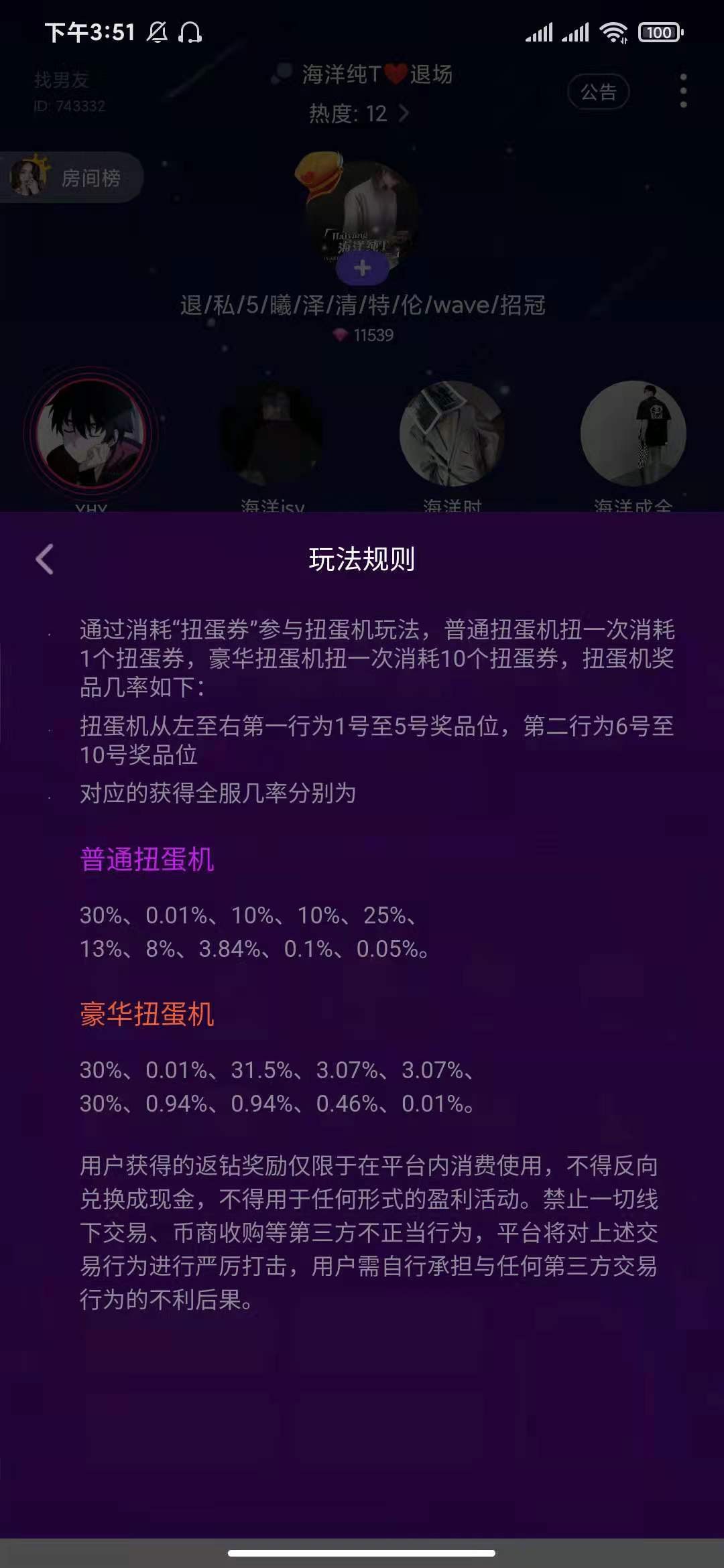 在该平台的直播间游戏房间内,多款“赌博”游戏改头换面,披着趣味小游戏的外衣,企图掩盖本质“赌性”。以该平台“扭蛋机”和“福袋”两款小游戏为例,平台用户通过购买扭蛋券、抽取福袋进行游戏,根据平台给出的命中率,中奖者可以有概率获得返还钻石的奖励,而钻石在该平台中相当于“货币”,可用平台内的消费,存在“赌博”的成分。