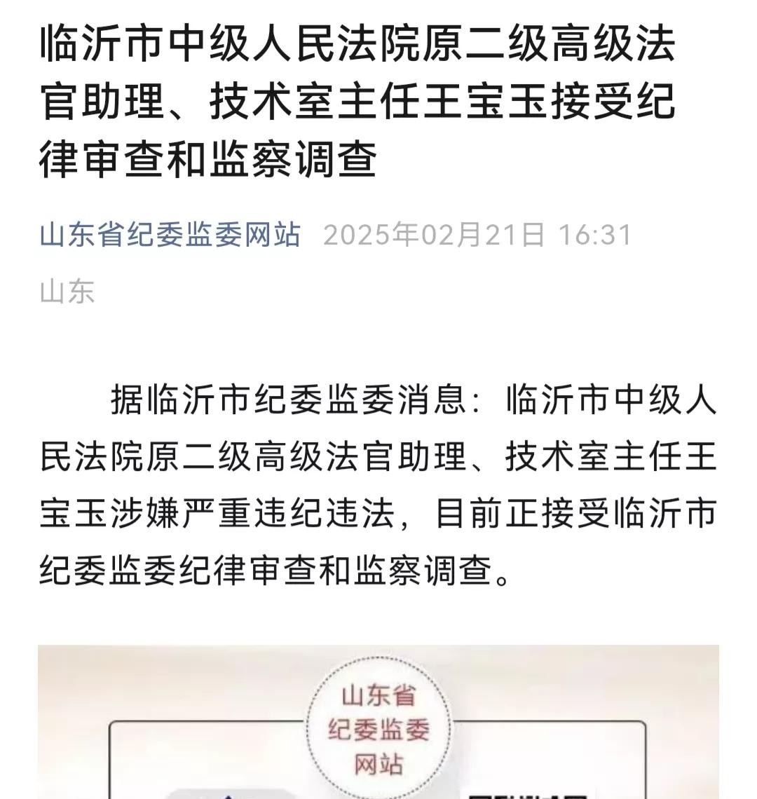 2025年2月21日,山东省纪委监委的一则通报像一颗石子投入平静的湖面,激起了层层涟漪——临沂市中级人民法院——原二级高级法官助理、技术室主任王宝玉因涉嫌严重违纪违法被查,目前正接受纪律审查和监察调查。这位曾在司法系统深耕的技术型官员,一夜之间成了舆论焦点。然而,与他的“落马”形成鲜明对比的,是公众对其履历的模糊印象:王宝玉究竟是谁?他的“技术室主任”身份背后,藏着多少不为人知的故事?