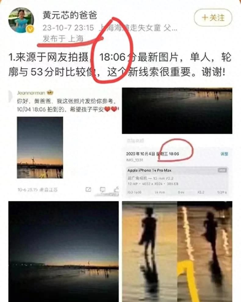 女童的父亲在微博上发布了一条新线索,称在网友拍摄的照片中看到了几个模糊的身影以及一个孩子的小身影。这些照片或许就是找到女童的关键线索。但是,这些照片拍摄的时间和警方通报的时间有所不同,引发了人们的猜测和讨论。有人认为是孩子在水边摔倒后重新爬起来走到了别的地方,也有人认为警方可能认错地方进行了图像查找,导致判断出错。与此同时,大家也在呼吁理性交流,不要攻击已经非常痛苦的孩子家人。在女童走失的这几天里,许多人都在关注寻找女童的进展。之前有好心人在海边守护女童约10分钟,还有疑似女童走失前的视频。女童的父亲在微博上发布了一条新线索,称在网友拍摄的照片中看到了几个模糊的身影以及一个孩子的小身影。虽然这些照片拍摄的时间和警方通报的时间有所不同,引发了人们的猜测和讨论,但这些照片或许就是找到女童的关键线索。