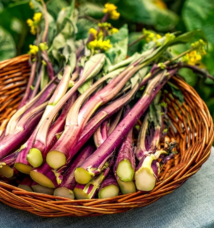 洪山菜薹俗称红油菜,是紫菜蔓的珍稀品种,有着1700年的种植历史,是国家地理标志保护产品和农产品地理标志产品,也是武汉著名的农产品特产。