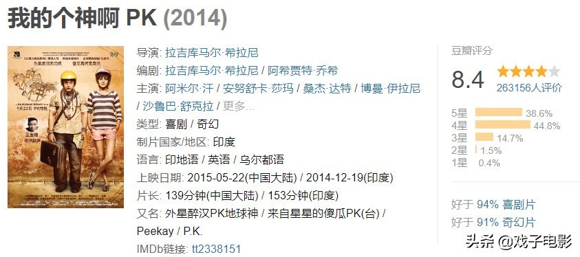 影片思想足够深刻,又好笑又让人感动,据说由于剧中关于宗教信仰,在印度差点被禁。