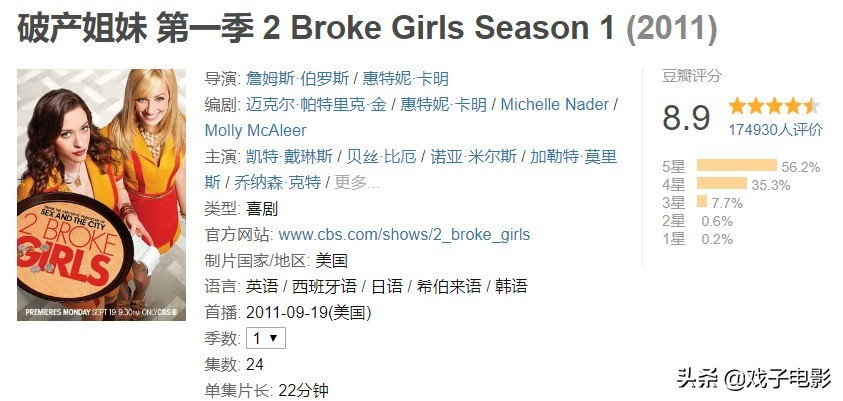 《破产姐妹》一共出了六季,这也是戏子君最喜欢的喜剧之一。