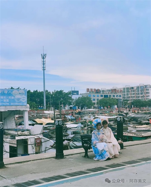 侨港风情街一端是金海岸大道,另一端是渔港码头,码头里停放着许多各种各样的渔船。码头附近经常有摄影师在为游客们拍摄古装艺术照。然而,在码头对面的一条街上也基本上都是艺术照相馆和渔具专卖店。