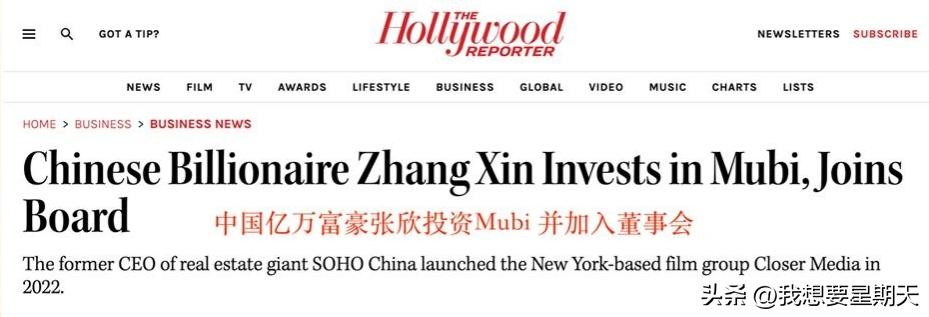 据了解,张欣投资了美国的流媒体平台Mubi,虽然没有公布金额,但是应该不低,张欣直接进入董事会。