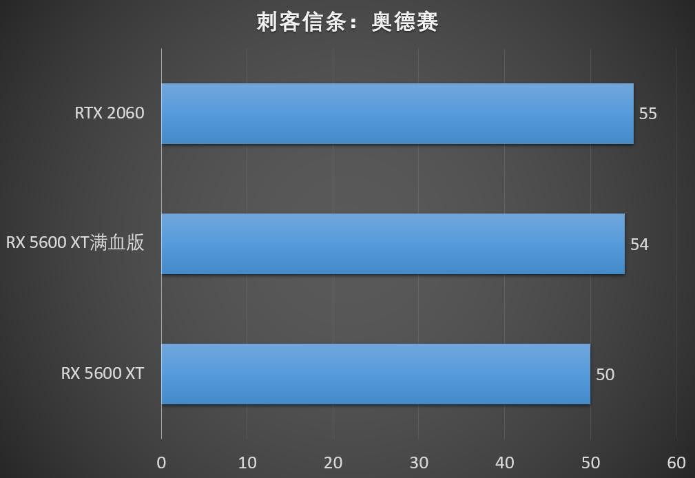第二个看《刺客信条:奥德赛》,特效设置为默认最高档,5600XT在刷BIOS之前落后2060 5帧,刷了BIOS之后只落后1帧,基本持平了。