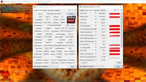本文测试的结果不能代表所有的游戏,但是也有一定的参考性,可以看出苏妈把切走的频率还回来之后,满血版的RX 5600 XT在N卡优势游戏中基本持平,在A卡优势游戏中有着不同程度的领先,总体而言,还是RX 5600 XT性能占优。最后,你还需要确定你的RX 5600 XT的散热性能不能承担得起刷BIOS提升的功耗,本文用于测试的迪兰RX 5600 XT 6G X战将PLUS刷了满血BIOS之后,在室温30℃下furmark烤机温度最高72℃,风扇转速150多转,基本没什么噪音,所以手上持有迪兰RX 5600 XT 6G X战将PLUS的玩家可以放心刷。