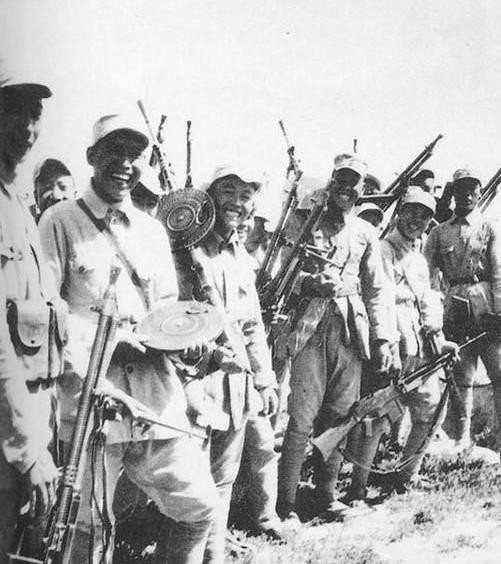 八路军展示轻机枪,可以看到捷格加廖夫轻机枪的身影