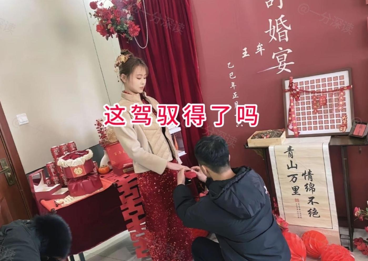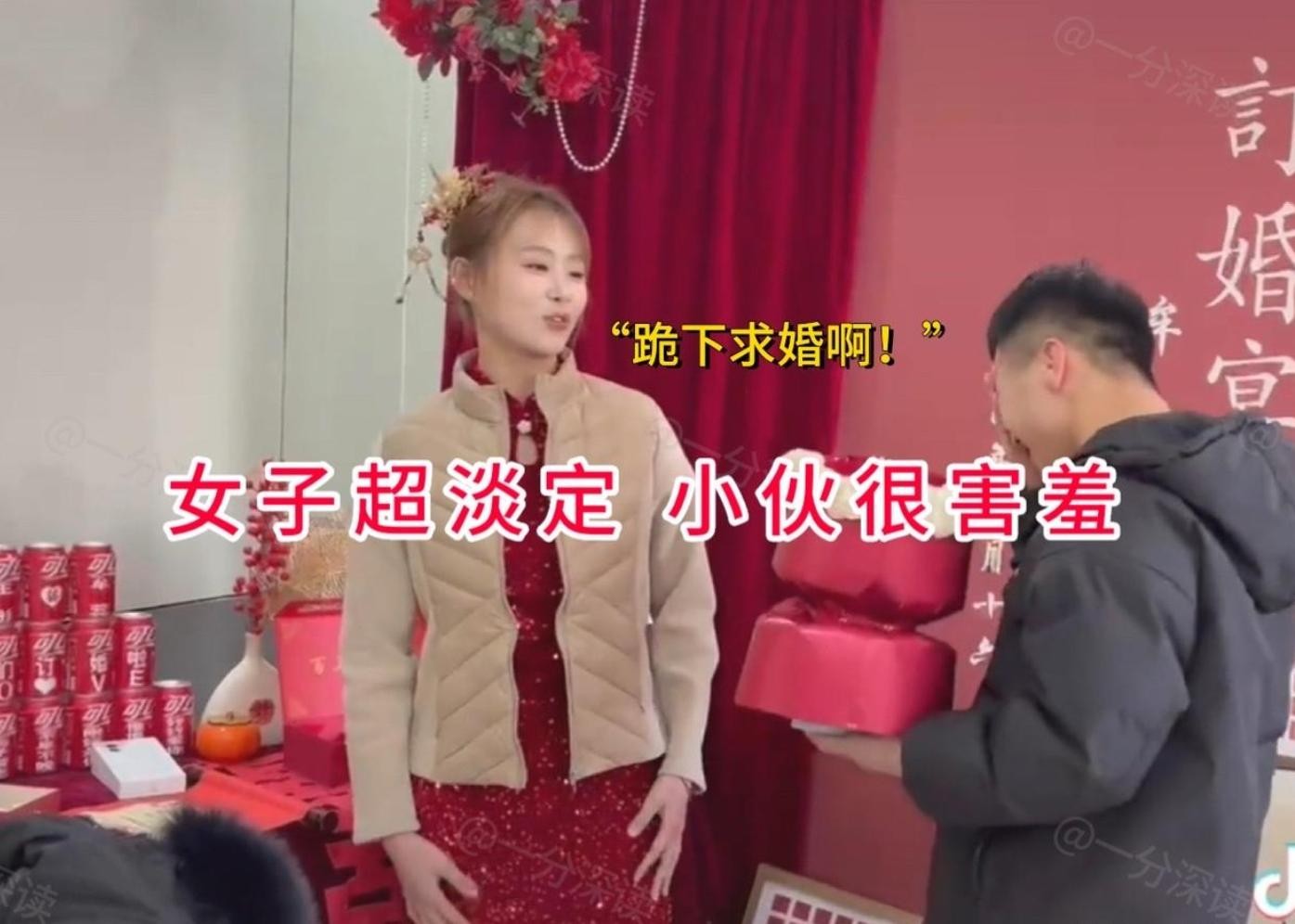 订婚现场小伙发抖?28岁新娘气场全开,网友:颜值差距太离谱!
