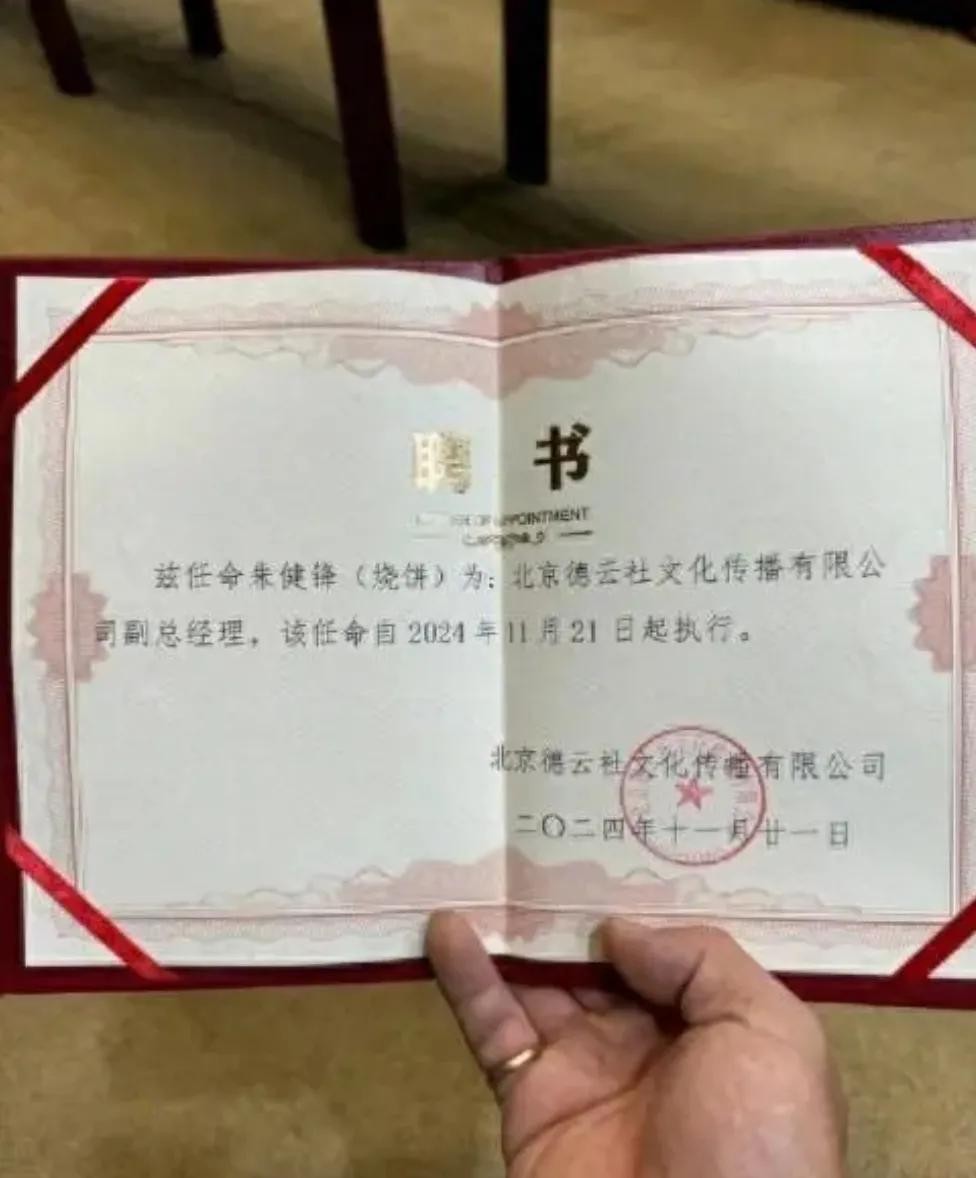 近日,德云社宣布了一项重要的人事变动,郭德纲的得意门生烧饼(本名朱云峰)被正式任命为德云社的副总经理。这一消息在相声界和广大粉丝中引起了热烈反响。