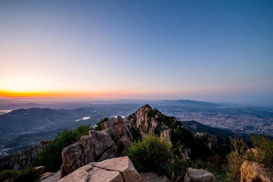 诗人杜甫年轻时漫游齐、赵,惊喜地远望泰山,“泰山啊,到底如何形容你才好呢”?只见他大笔一挥,五个字勾勒出泰山的总体印象“齐鲁青未了”。五个字描绘出绵延数百里的泰山横亘古齐鲁的阔大气势。并用一个“青”字,给泰山的形象定下了鲜明的色彩基调。