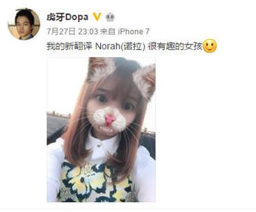 最开始的时候,DOPA还买了个小关子,虽然晒出了诺拉的照片,但是却是P上了可爱的动物头像,好像怕大家将这个新翻译抢走一样!