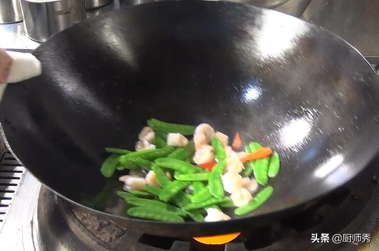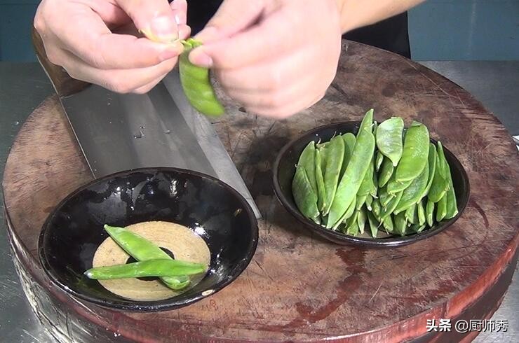 1、荷兰豆必须把筋去掉,汆水不宜过长,虾仁汆水13秒口感正好。