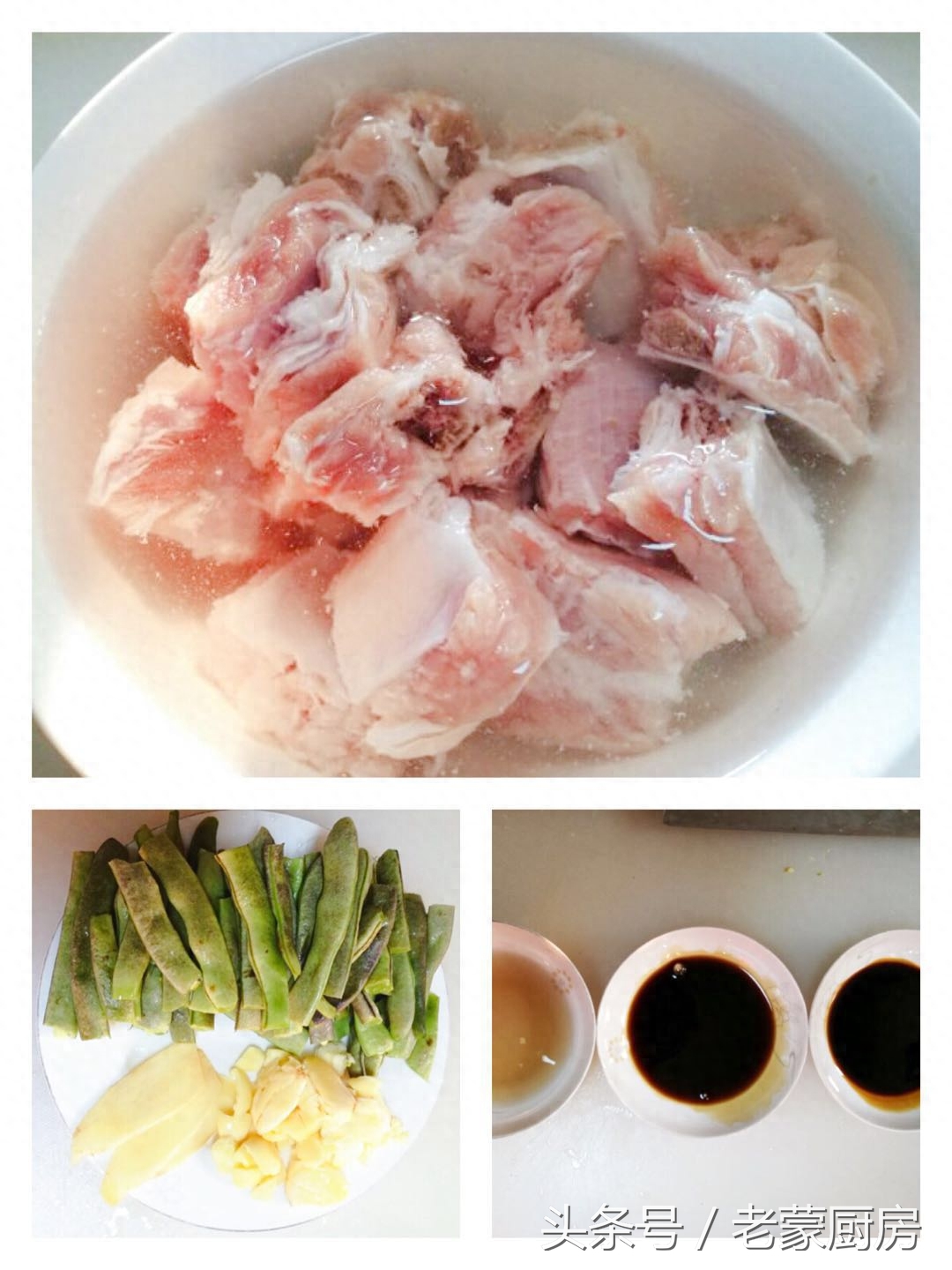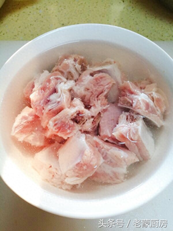 1、将肋排切成小块,用冷水浸泡一小时,将血水彻底泡出,清洗干净备用;