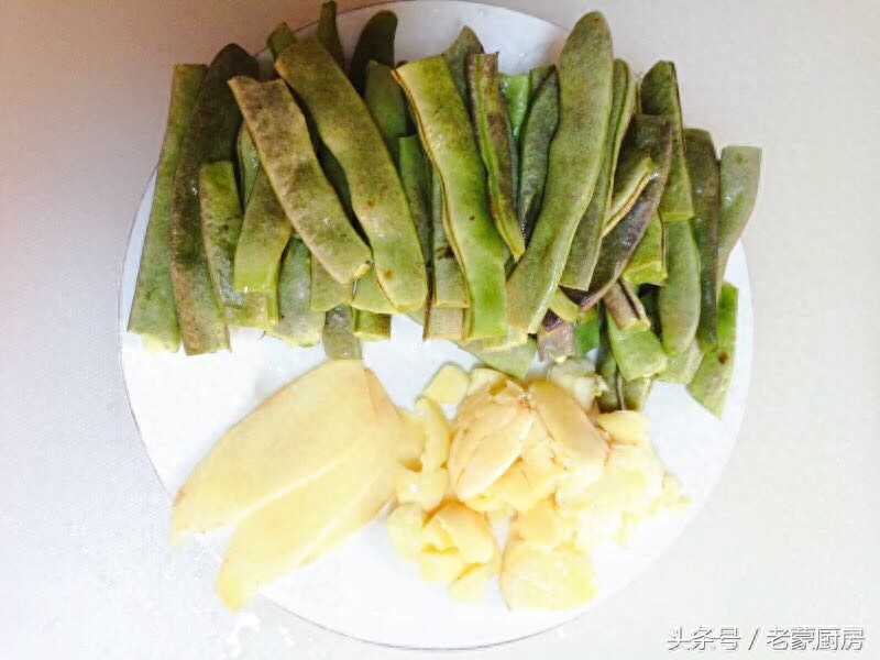 2、豆角掰成大长条状备用;