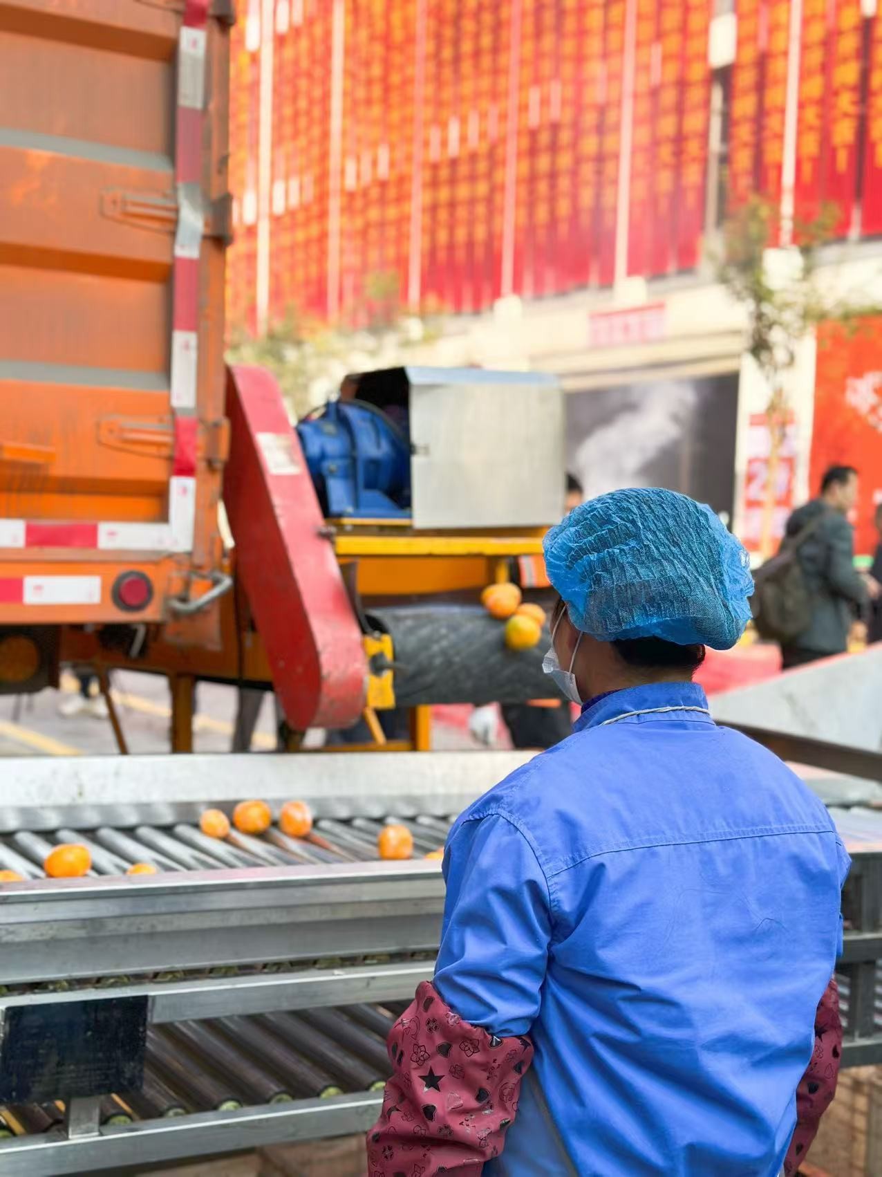 开榨仪式上展示鲜果入库过程