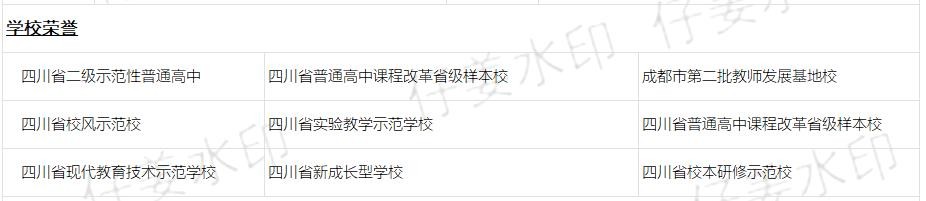 学校先后荣获四川省二级示范性普通高中、四川省普通高中课程改革省级样本校、成都市第二批教师发展基地校等荣誉称号