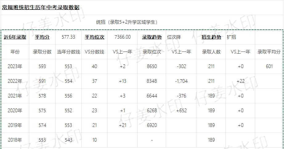 中考统招生:录取分数线逐年上升,2023VS2018年,上涨了40分,19年和22年上涨均在10分以上,2023年录取平均分为601分;从位次上来看,与分数的上涨形成了一个反向的发展路径,位次在下降,由2019年的6920位,下降至2023年的8650位,下降趋势还是很明显的,2023年对比2022年也下降了302位。综合来看,学生的整体质量上升带动了学校分数的上涨,但综合来看,优质生源选择田中的比例在下降。