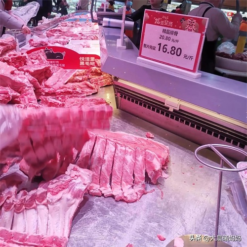 我就没想要购买,后面老公过来问我是不是在买排骨,我说没有啊,一整片也需要不少钱,我就是看下价格。