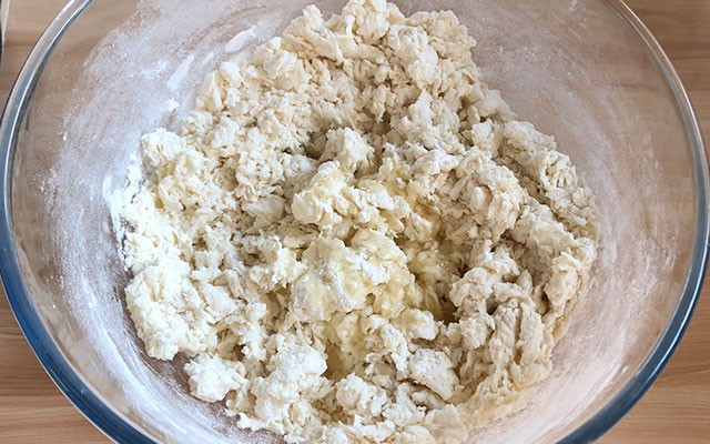 第六步:把剂子的两头包紧,都包好后,把剂子擀成大薄片,馅儿出来了也不用管,擀薄就好。