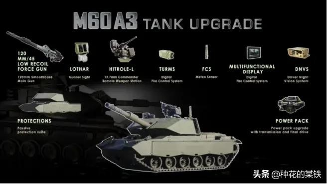 此外还有应该就是意大利给M60A3巴顿设计的升级方案了,意大利莱昂纳多公司在2017年10月17日在巴林国际防务展览和会议(BIDEC)的E2展台上发布了M60A3的升级方案。目的是为那些现役有M60的国家提供更现代化的坦克升级方案,使其能够比较贴合第三代主战坦克的能力。莱昂纳多公司是奥托·梅莱拉和依维柯,菲亚特合并之后,又跟芬梅卡尼卡合并成立的意大利军工集合体,该公司曾为意大利研发过白羊座等多种型号的主战坦克,并且还为意大利生产过大量的M60,所以在生产和维修M60方面有着深厚的经验。