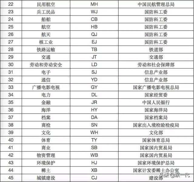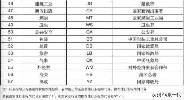 行业标准代号