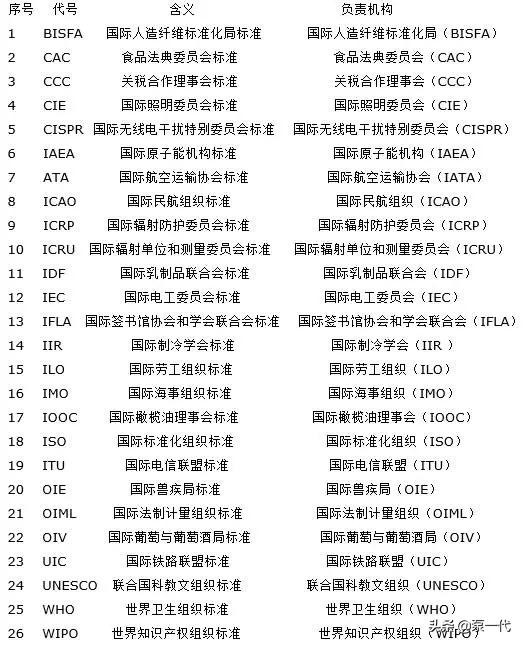 ISO、IEC、ITU 国际标准代号及国际标准化组织认可作为国际标准的国际行业组织制定的标准代号。