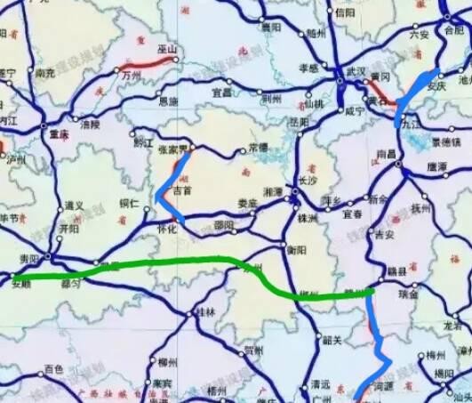 邵阳目前可以经过怀衡高铁东进到达张衡阳然后通往珠三角各地城市,也可以西进到达怀化市,而坐落在邵阳市的北站则是可以通过沪昆高铁东进快速进入长三角地区,也可以西进便利的叨叨云贵地区,从下图可以看出邵阳的大致高铁方向,注意详细的路线要看国家发布的,下图仅仅表示大致方向,不代表实际位置。(蓝色是已通的高铁线路,红色是表示在建的高铁线路,绿色是规划高铁的线路)