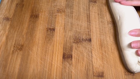 5. 面团醒发好,在案板上揉光滑,然后再搓成长条