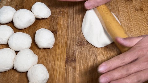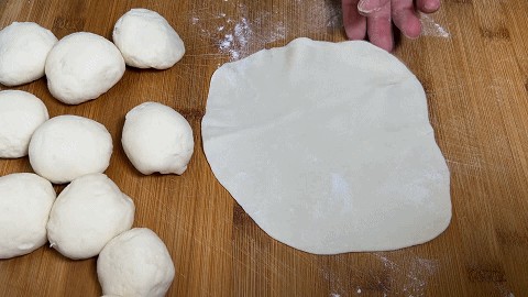 4、 小面剂要一个个揉成小圆饼,再擀成薄如纸的饼